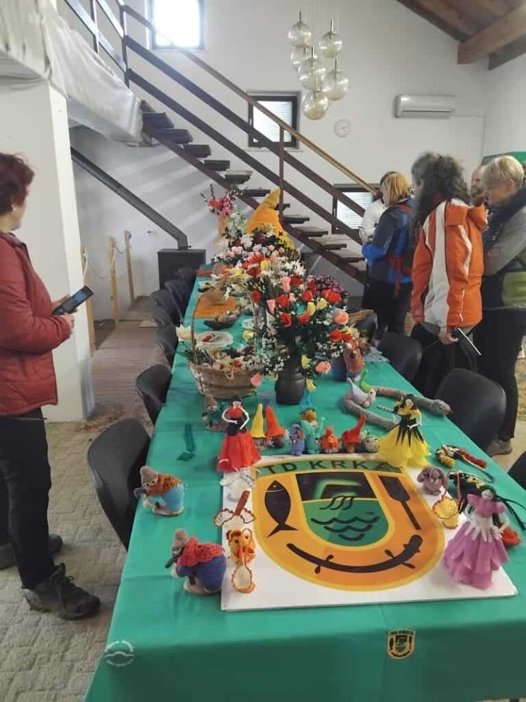 Njihovi izdelki nastajajo v dolgih zimskih večerih ob prijetnem druženju, kjer vsaka izdeluje izdelke, ki jim najbolj ležijo. Izdelava cvetja iz papirja je danes naša kulturna dediščina, je znanje, ki se prenaša iz roda v rod, in veseli smo, da je tudi naše Turistično društvo vpisano v register nesnovne kulturne dediščine. Kvačkanje pa tudi postaja vse bolj zanimivo, saj lahko izdelamo sami prtičke, s katerimi okrasimo dom, kvačkane igrače in okraske, s katerimi razveselimo naše malčke in naše prijatelje, oblačila in še in še. Naše članice že vrsto let prenašajo svoje znanje na mlajše generacije v OŠ Zagradec in PŠ Krka. In vseh the izdelkov se je nabralo že veliko, zato smo se odločili, da jih pokažemo tudi našim pohodnikom. Medtem, ko so čakali na avtobusni prevoz na Muljavo in v Višnjo Goro, so si jo lahko ogledali. Bili so navdušeni, slikali so izdelke in jih tako odnesli domov za spomin na Jurčičev pohod 2025.